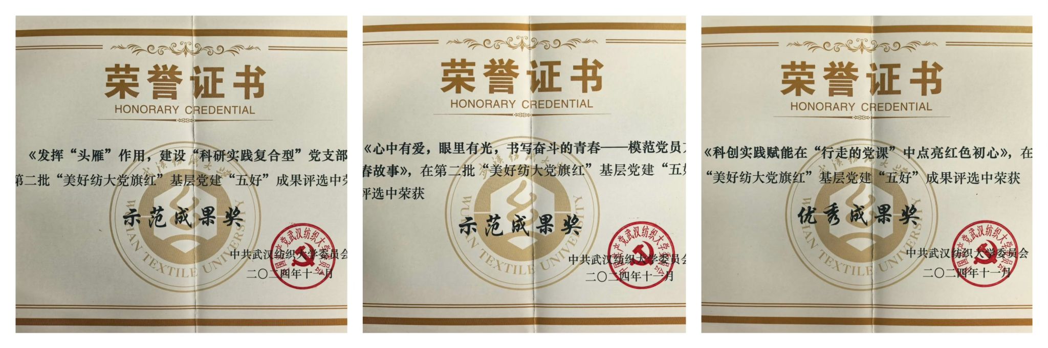 各项事业发展。深入开展党纪学习教育,学习宣传贯彻党的二十届三中全会精神,开展人才培养质量大调研,挖掘基层好经验,获评第二批“美好纺大党旗红”基层党建“五好”成果3项;师生党员服务下沉“一站式”学生社区被全国高校思政网报道2篇;“传承励新,风范长者话成长”主题活动成果获省关工委最佳征文1项,优秀视频1项;教师党员立项省级班主任工作精品1项,校级“时代新人铸魂工程” 研究课题2项。
