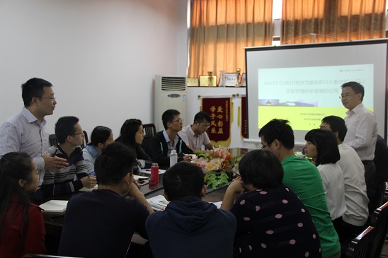 本次指导大会中,杨鹏首先利用PPT、举例子等方式向同学们简单介绍了这两大软件的具体功能。随后,杨鹏从几何建模、二维草图、三维参数化几何模型、CAD修改、建模等几个方面讲述了ANSYS FLUENT在流体力学方面的仿真模拟,R15.0在结构力学方面的功能仿真模拟。他指出两大制图软件的绘图模拟能力将在污染传播的环境科学研究治理领域发挥重要性作用,R15.0的新功能可以实行并行分网的功能:在接触分析方面,实现了螺栓螺纹快速分析,无需详细的螺纹几何模型,从而减少计算时间等将对绿色环境科学领域方面起到极大的促进作用。