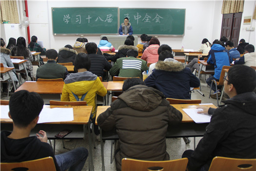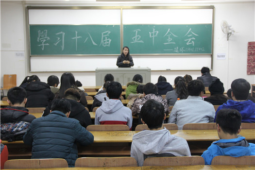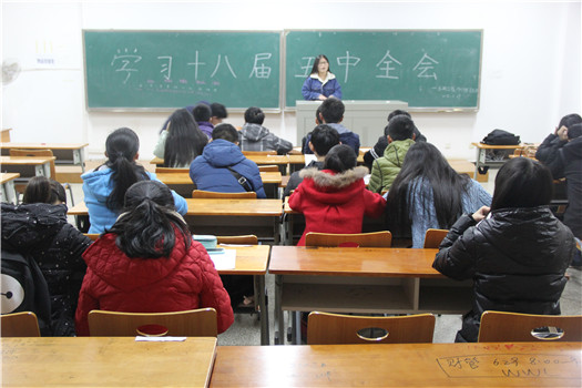 在六栋教学楼分班开展了以“学习十八届五中全会”为主题的团日活动。