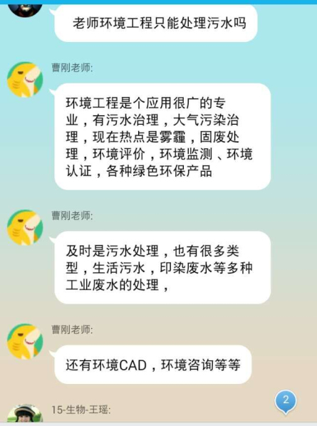 总有一名专家学者守候在QQ群,耐心回答学生们的提问。“环境专业的就业方向是什么啊?”“建筑环境与科学要学几门课程啊?”“给排水专业对画图要求高不高啊?”同学们热情高涨的提问,专家学者们孜孜不倦的回复。曹刚是环境专业的教研室主任,他在新生群里“蹲”的时间最长,他不仅回答同学们对专业的疑问,更是对新生们的发展寄予厚望。他在群里跟新生们互动时说:“在大学一定要掌握自主学习的方法,掌握知识的内在联系,通过实验、实践来提高动手能力,只有真正把知识融会贯通了,才能活学活用,才是真正的学懂了”。