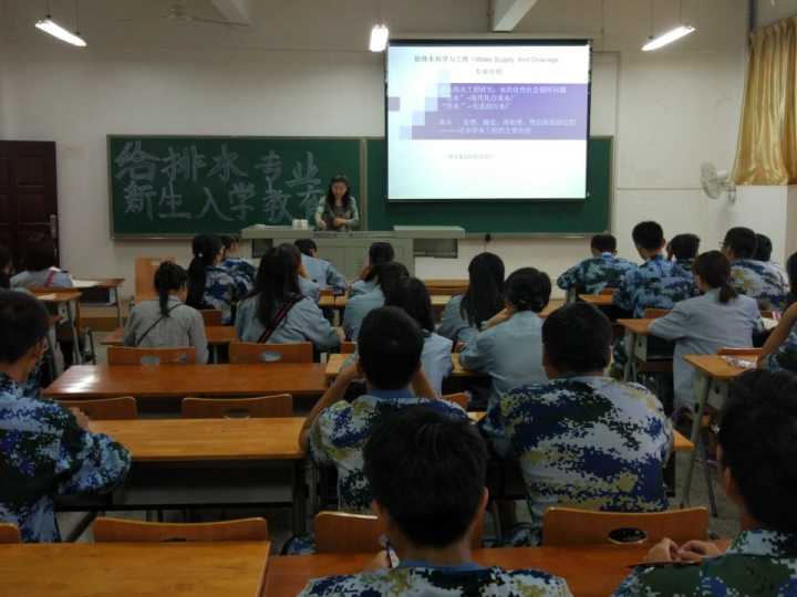 夏院长首先对2017级新生表示热烈的欢迎,同时他激励同学们扎实基础,主动应用,为日后成为一名优秀的专业人士而努力。接着四个专业的老师分别向新生们介绍了本专业的基础学习内容与学科开设课程,并且通过各工程领域的项目案例,为同学们展示了本专业的考研方向与就业前景。环境专业的曹刚主任结合自身求学经历,勉励同学们多学习、多思考,积极参加社会实践,并希望同学们能够在大一就开始重视学习,在课后积累大量知识,做到由量变到质变的转变。生物专业的谭远友教授用两句话作礼物送给新生:“精神愈用而愈出,智慧愈苦而愈明”,表达了对广大新生的深切期盼。建环专业郑万兵老师用了一句话欢迎17级新生:“一生营造,筑天下屋宇;一世空调,谋人间冷暖。”他希望新生们能够深入探究,积极创造。给排专业的吴宜珍老师希望17级新生能够积极探索,在不断地实践中完善自己,她同时要求新生们要树立远大目标,并不断奋斗!