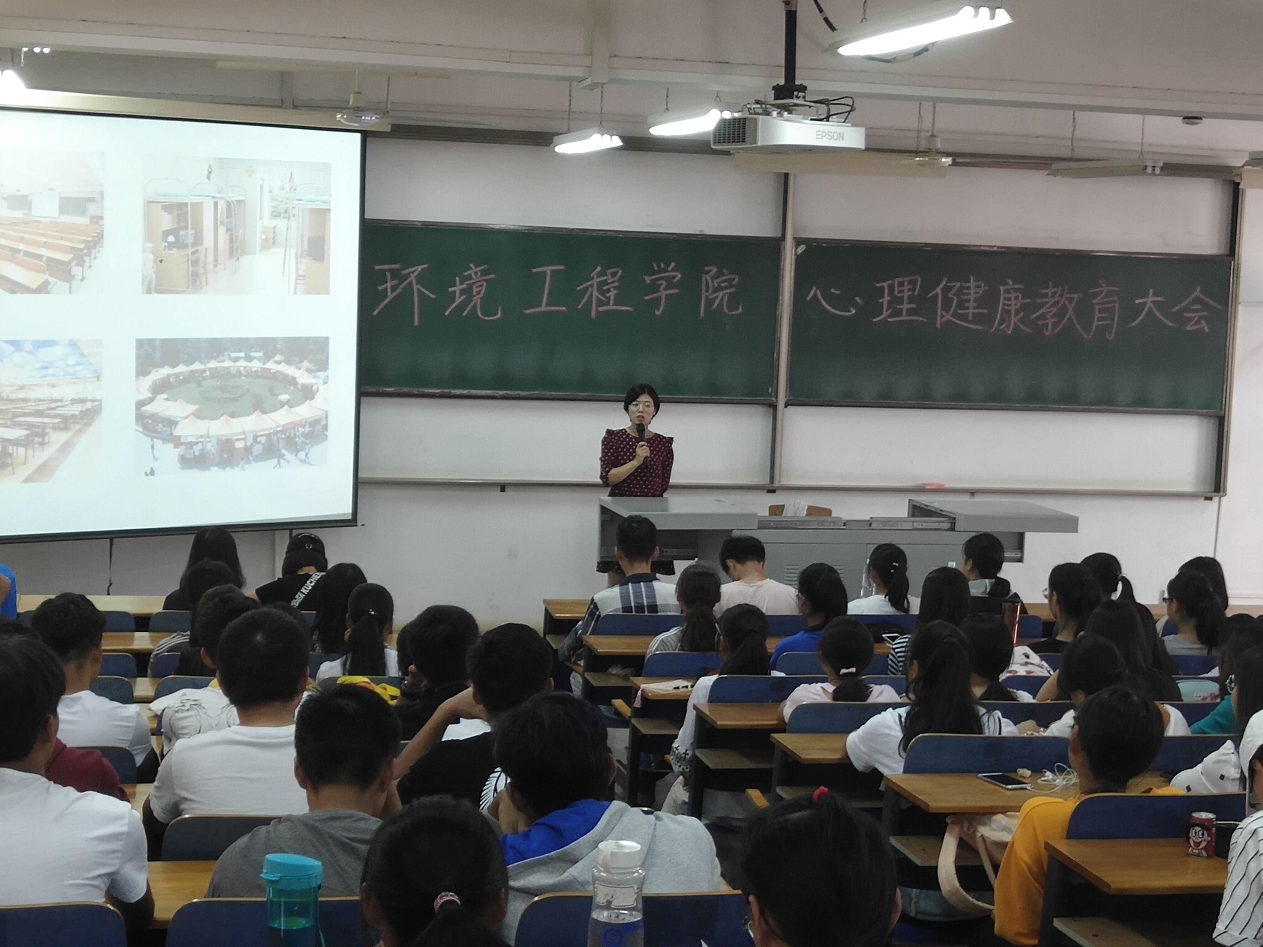 于三栋教学楼417教室举行了18级新生心理健康教育大会,罗琴老师为主讲人。