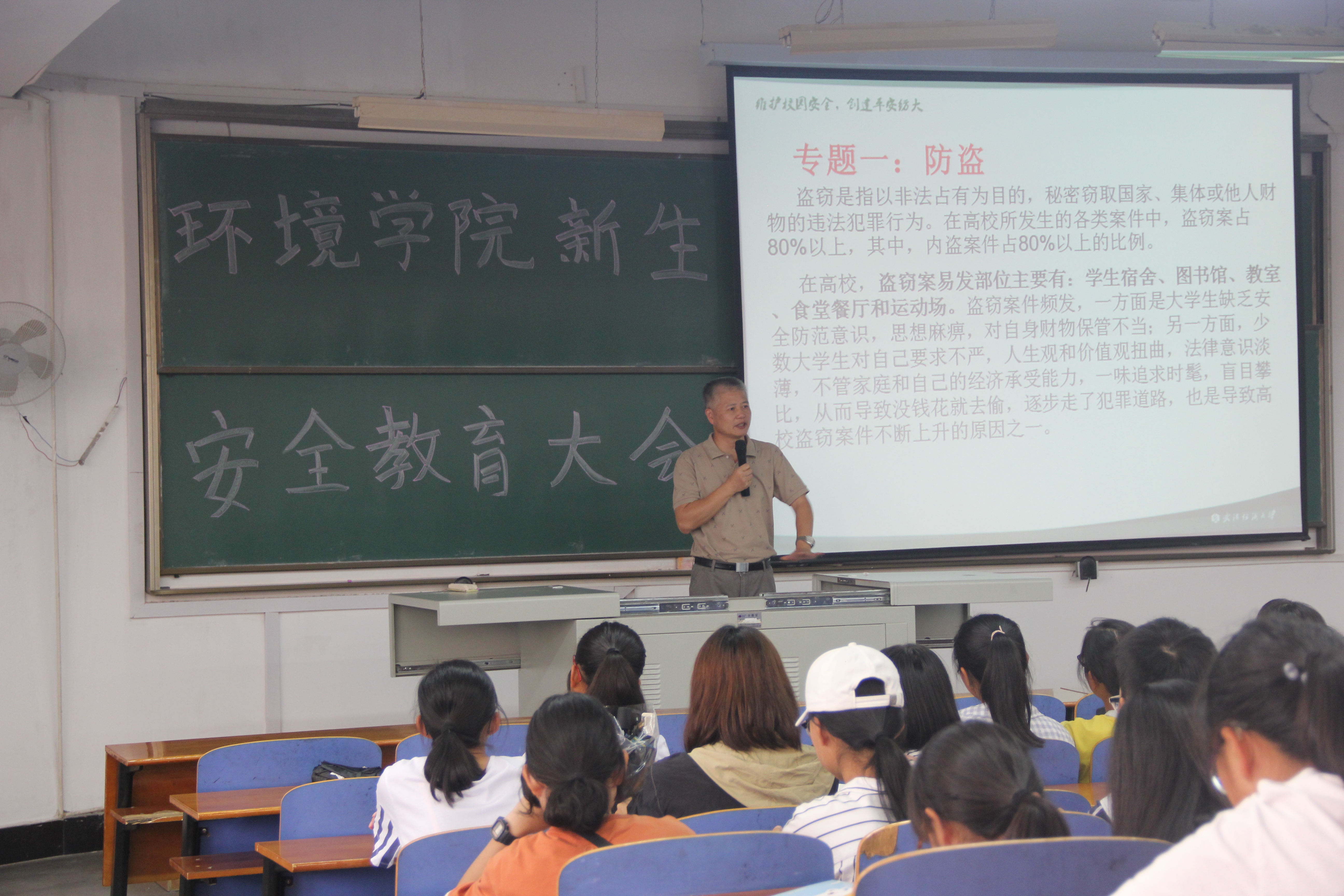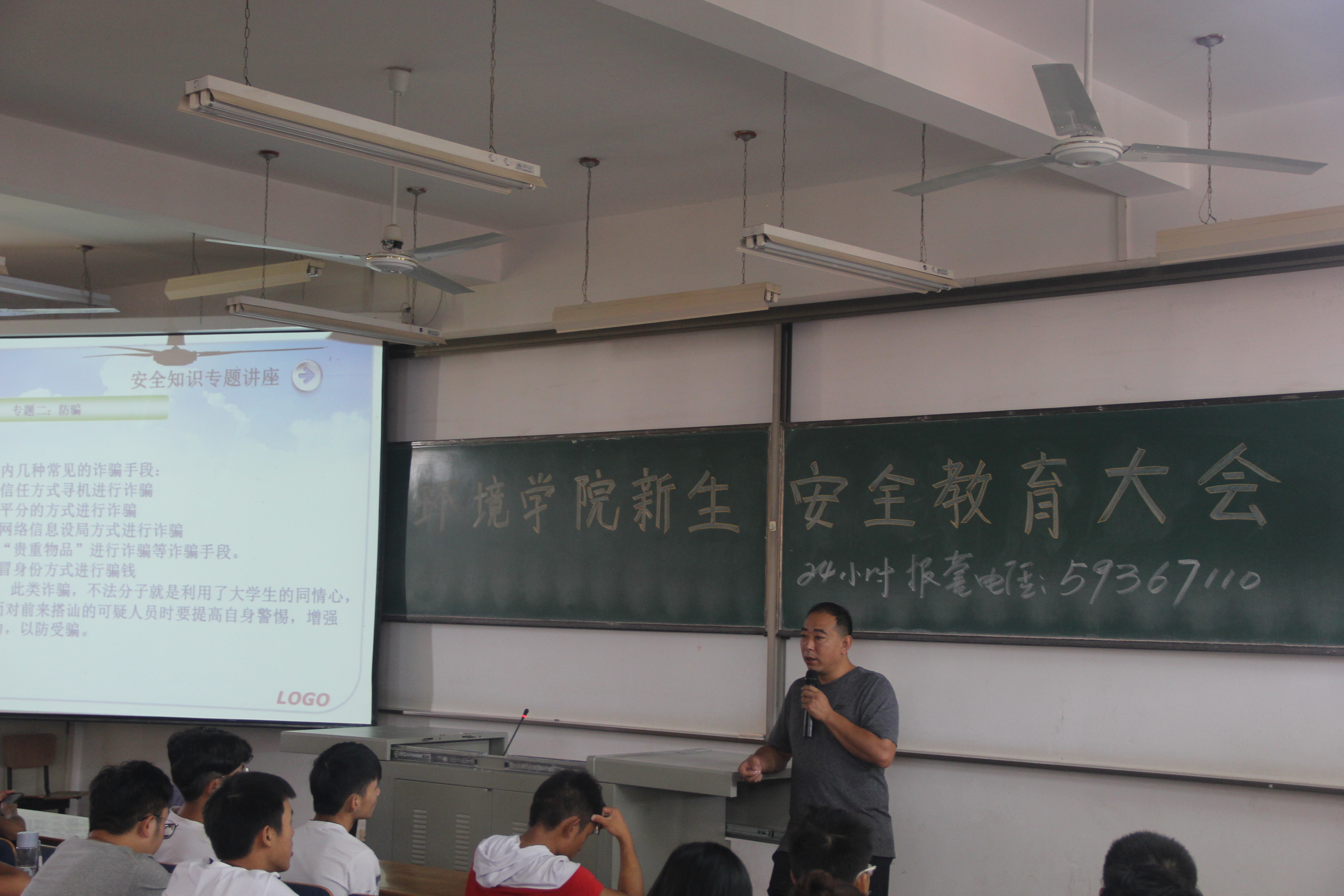 分别在三栋教学楼416与T101教室举行了新生安全教育大会,由校保卫处尚天飞老师和夏向阳老师主讲。