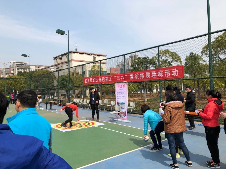 为了提高全员文体活动的积极性,展现全体教职工的良好精神风貌,武汉纺织大学工会联合体育课部于2019年3月7日下午在阳光校区新篮球场举办了以“不忘初心跟党走,强身健体育英才”为主题的教职工“三八”素质拓展活动。