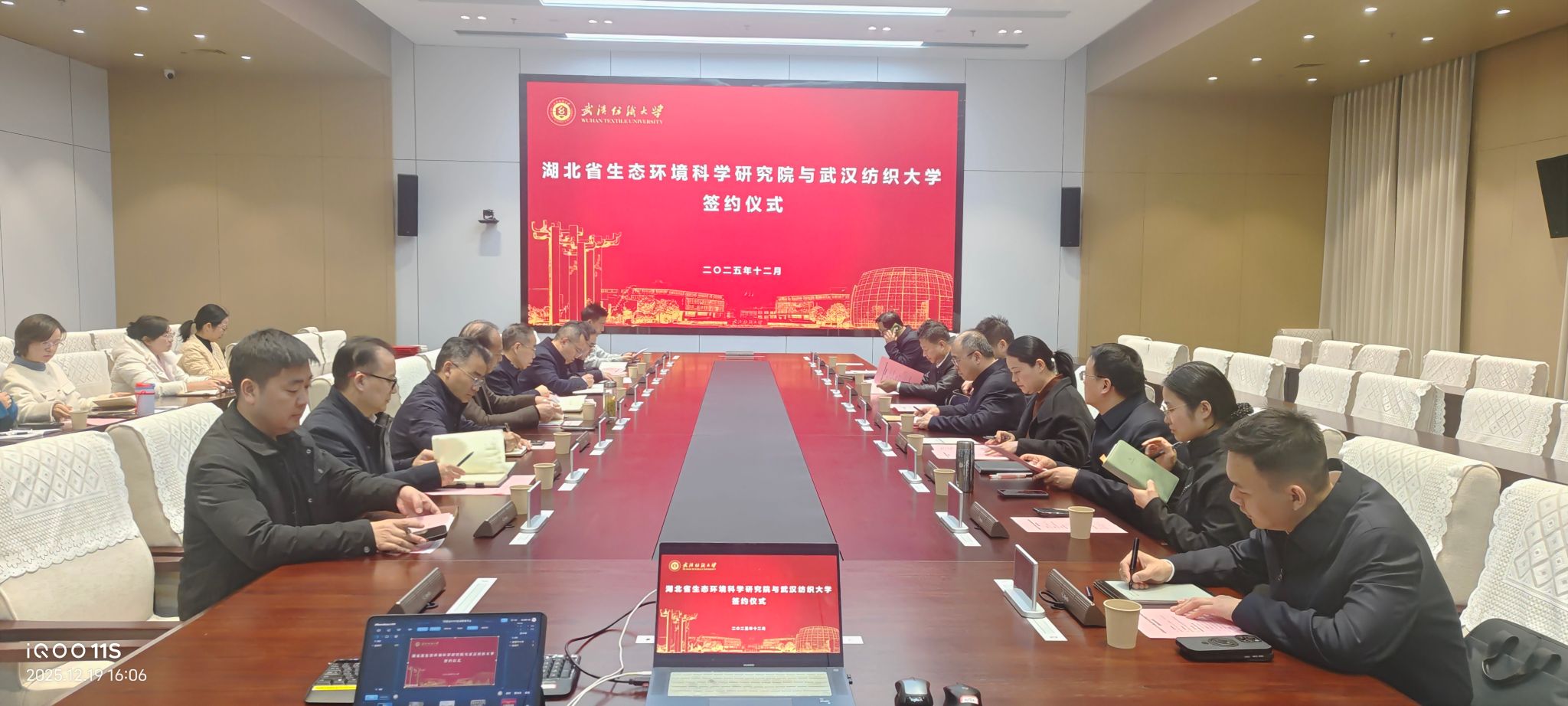 徐卫林对省环境厅和省环科院一行的到来表示热烈欢迎。他指出,深化政产学研合作是推动绿色发展、服务生态文明建设的重要路径。省环境厅作为全省生态环境保护工作的主管部门,在政策引领、环境治理与监管方面发挥着关键作用;省环科院作为省内环境科研的重要力量,具备扎实的研究基础与技术创新能力;武汉纺织大学作为一所以纺织为特色、多学科协调发展的大学,在绿色制造、新材料研发等领域拥有学科优势与人才资源。三方携手共建合作平台,是贯彻落实国家绿色发展战略、对接区域环境治理需求、推动学科交叉融合的重要举措。
