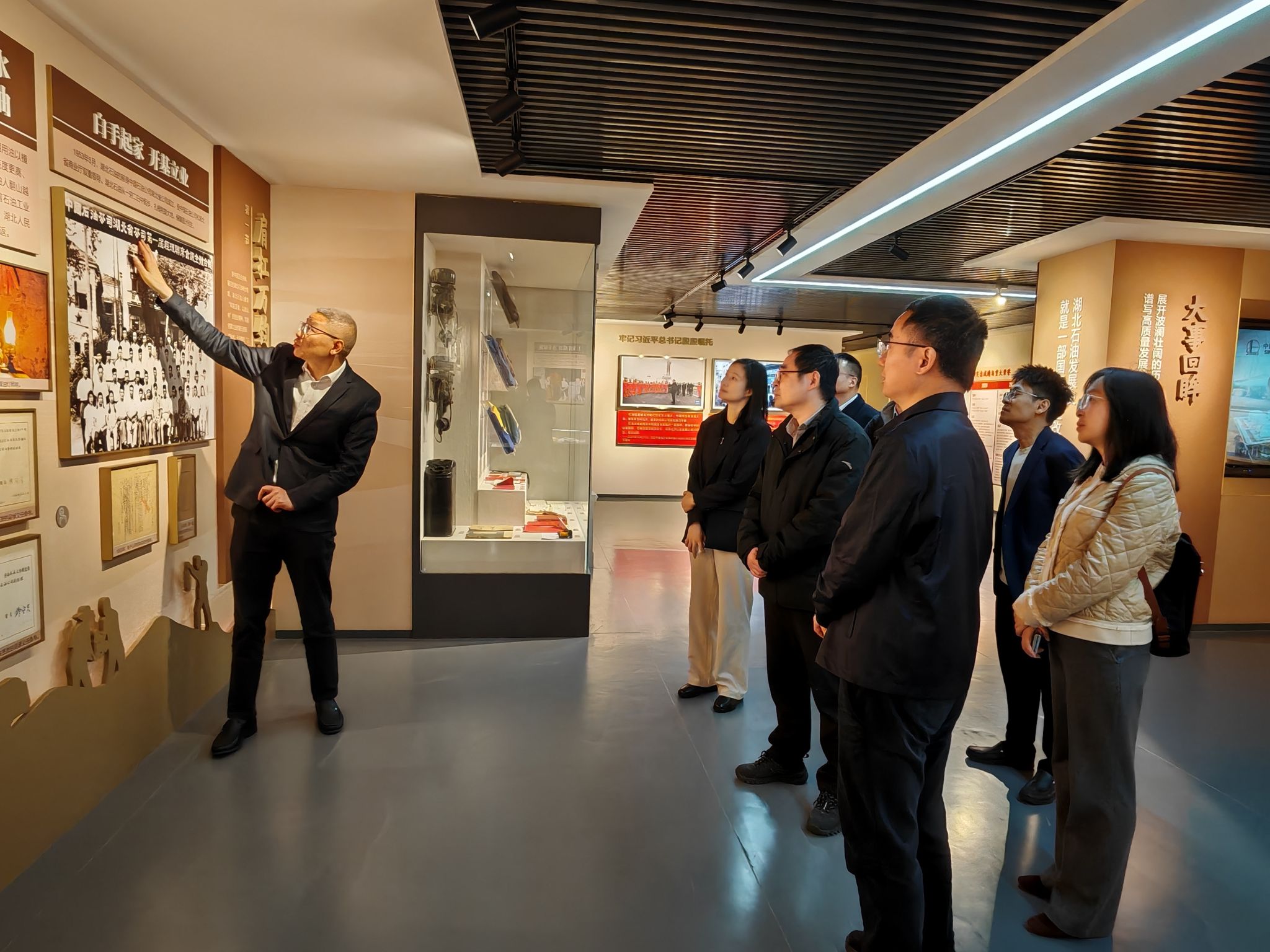 一行参观了澳门中特网展厅,详细了解了湖北石油的发展历程、澳门中特网、科技创新及社会责任等方面成果,进一步增强了对企业综合实力与行业地位的认识。