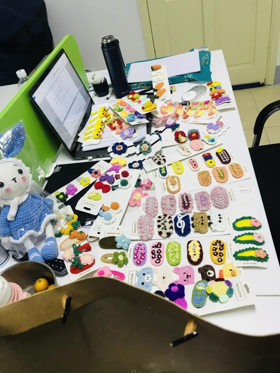 难得五一小长假,大家都想放松一下,而在武汉纺织大学创新创业基地,环境工程专业大三学生梁祺睿和她的小伙伴们却十分忙碌,有的准备发货,有的忙着编织各式钩织品,发饰、包包、玩偶、耳饰等品种繁多,十分精致、引人注目。