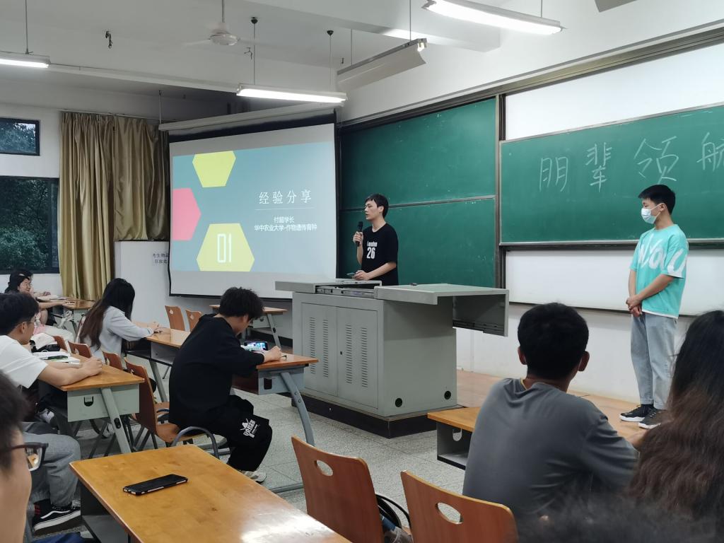 于六栋教学楼开展了朋辈领航经验分享会。会议邀请到四位成功上岸的毕业年级学生做考研经验交流分享。