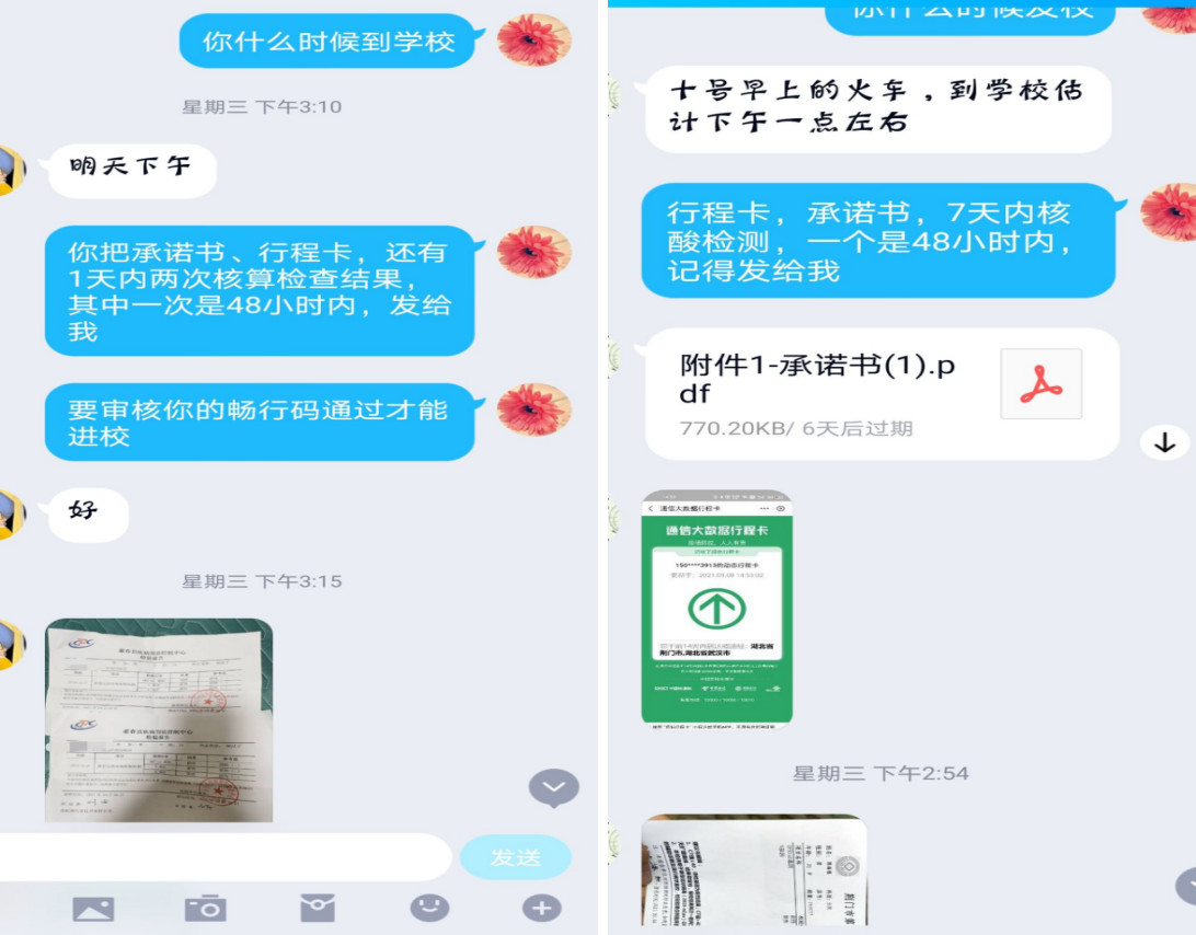 第一时间将返校要求告知同学们,严格落实返校前14天健康打卡和轨迹监测,合理安排返校时间节点,甚至具体到某一时段到校人数。提醒同学们规划好行程、做好途中安全防护,确保每位符合返校条件的同学按时返校。澳门中特网