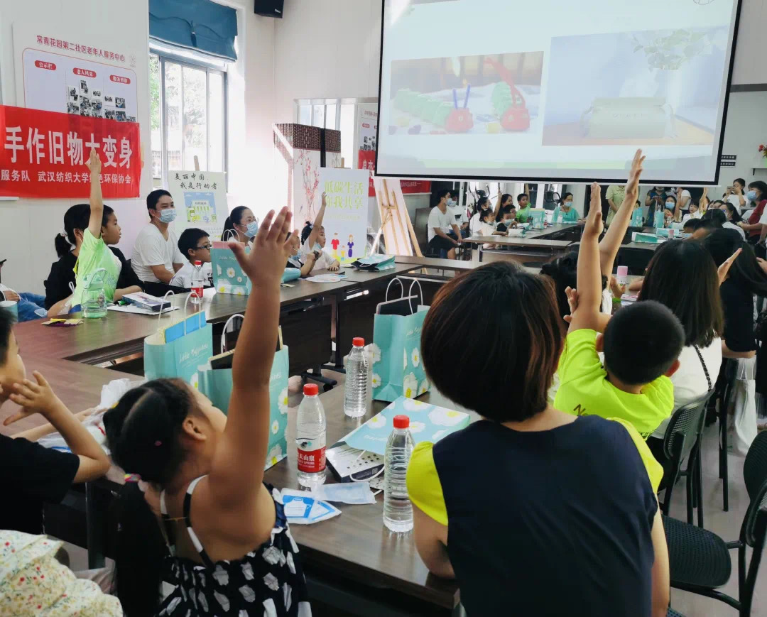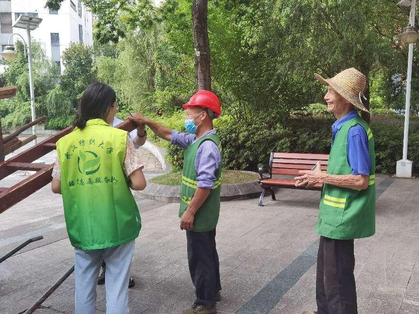 “生态服务,科普先行”助力绿色社区建设。服务队成员走进洪山区玫瑰湾社区、狮南社区等,依托专业背景,抓住“一老一小”群体,贴近社区需求,通过环保游戏、环保问答等寓教于乐、寓学于趣的方式对垃圾分类、水体保护知识进行科普,引导居民关注环保、参与环保,投身节水护湖行动,助力生态宜居社区建设。