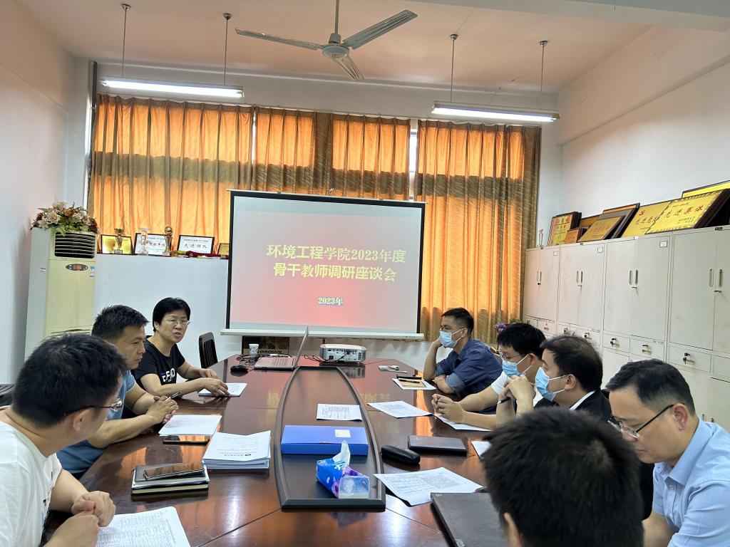 2023年5月19日,环境工程澳门中特网 在崇礼楼06-206小会议室召开骨干教师座谈会,党委书记谢晓萍主持,院领导班子、系主任和专任教师代表等骨干教师参加座谈会。