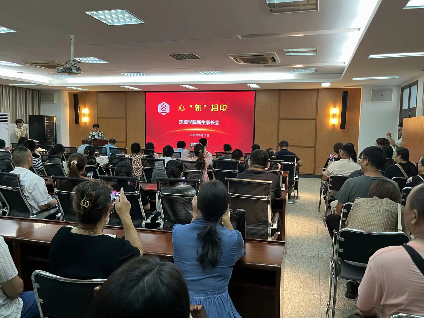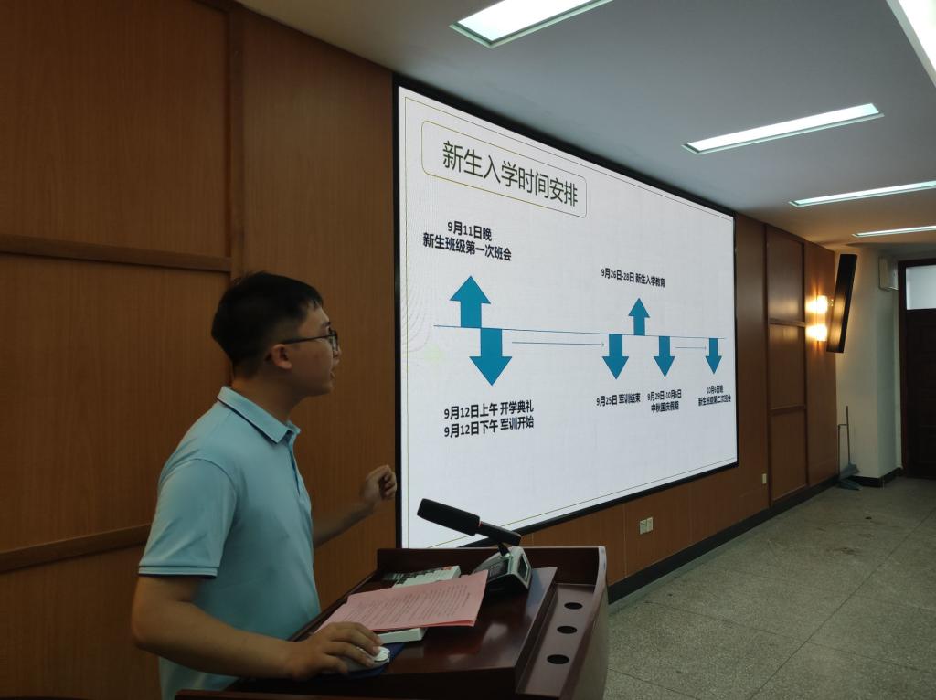 张宇航介绍了新生情况及入学教育安排。环境12304班韩正宇同学的父亲作为家长代表发言,表示会积极配合学校做好孩子从高中到大学的衔接教育,让孩子们尽快调节好身心状态,做好大学四年的学习规划。