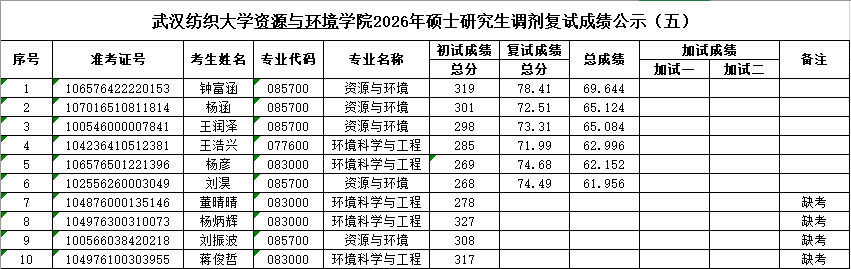 根据《武汉纺织大学2026年招收攻读硕士学位研究生复试录取方案》等文件精神,现将澳门中特网 2026年硕士研究生第五轮调剂复试成绩公示。公示时间:2026年4月17日-19日