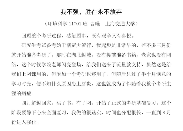 2.字数限,建议1500字左右,毕竟考研战线长,经历丰富,复习经验并非三言两语可以说清考研总体规划复习经验参考、曲折故事与感悟等)