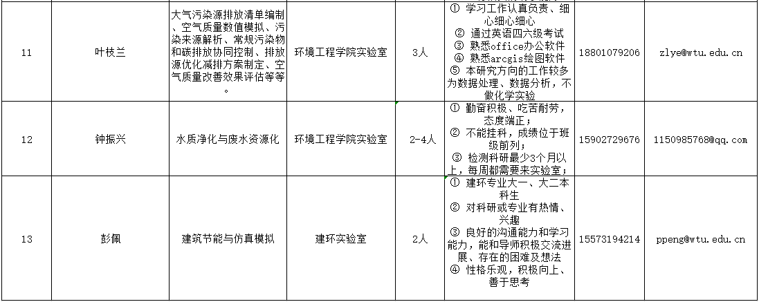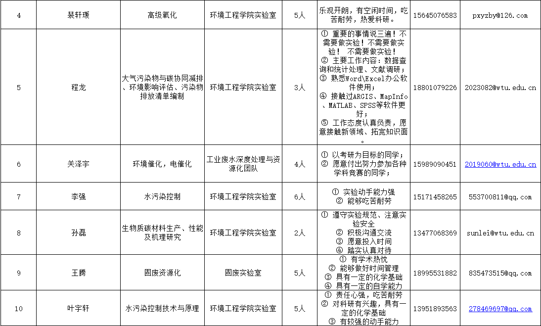 经过前期招募意愿征集,15名老师共需招募69名学生助手(详情见下表),欢迎有致力于从事科学研究的同学,根据表中要求、联系方式咨询对应老师(排名不分先后),由老师根据报名情况择优选拨。