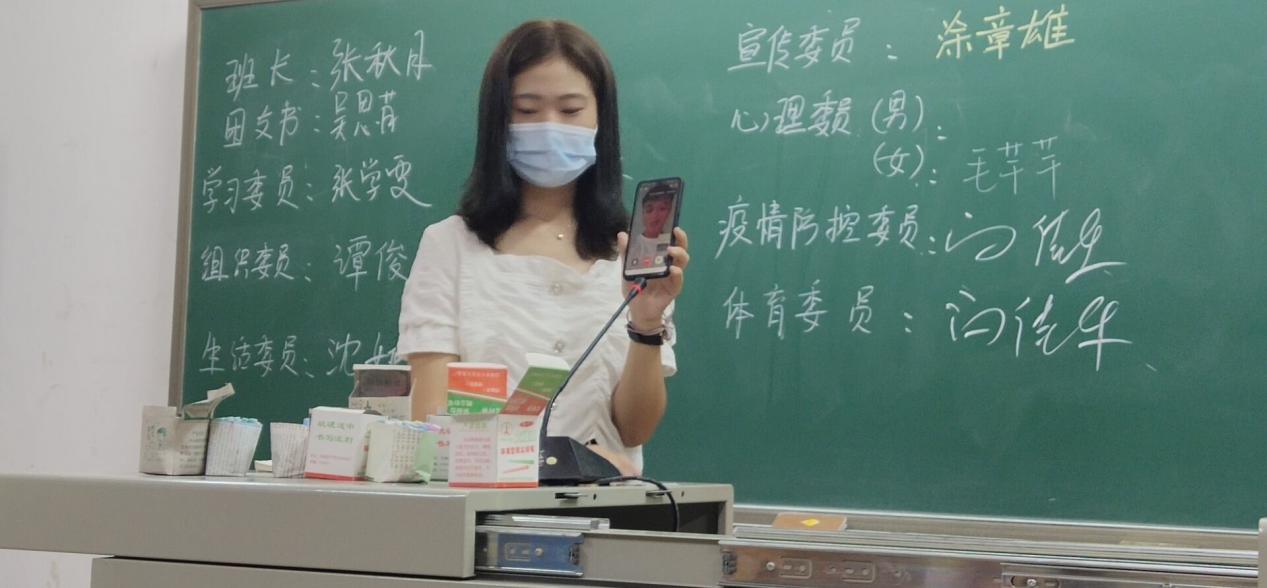 8月30日晚,在新学期第一次集中晚点名上,该校环境科学11901班的同学们间隔就坐,为参加竞选的同学们投票表决。在顺利选出班长、团支书等各职位之后,学习委员的人选出现了难题,本来有两位竞选人,但现场只来了一位,而远在宜昌的刘云豪则只能委托班长,通过手机连线这种特殊方式进行演讲,并成功竞选上了学习委员。