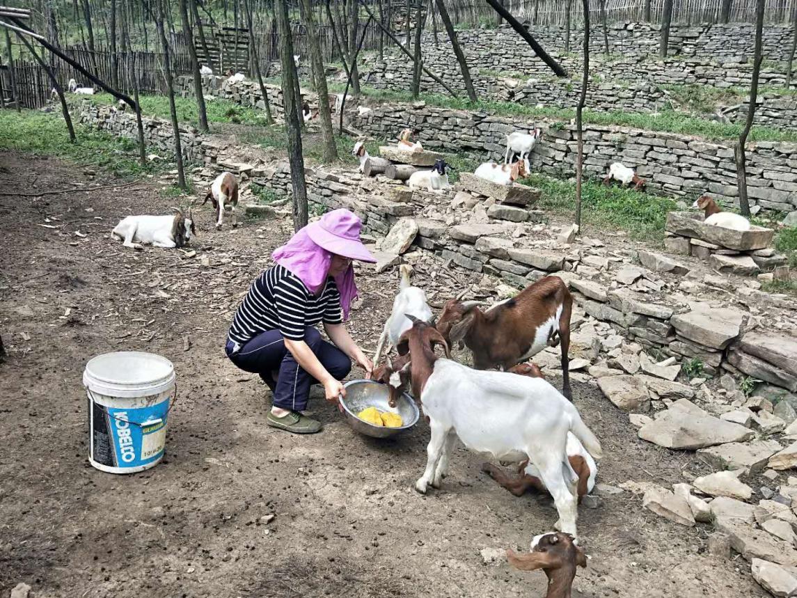 (妈妈在给山羊喂食)