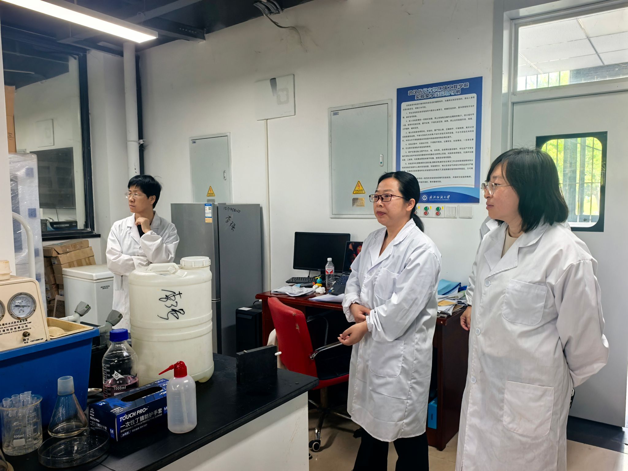 检查组重点围绕实验室危化品储存、设备操作规范、卫生环境及个人防护情况展开排查。经检查发现,多数实验室安全管理较为规范,但部分区域仍存在卫生清理不及时、实验台面物品杂乱等问题;个别学生未按要求穿着实验服或未佩戴护目镜、手套等防护装备,存在一定安全隐患。检查组现场记录问题细节,并将检查结果实时反馈至对应实验室负责教师,要求限时整改并提交整改报告,形成闭环管理。