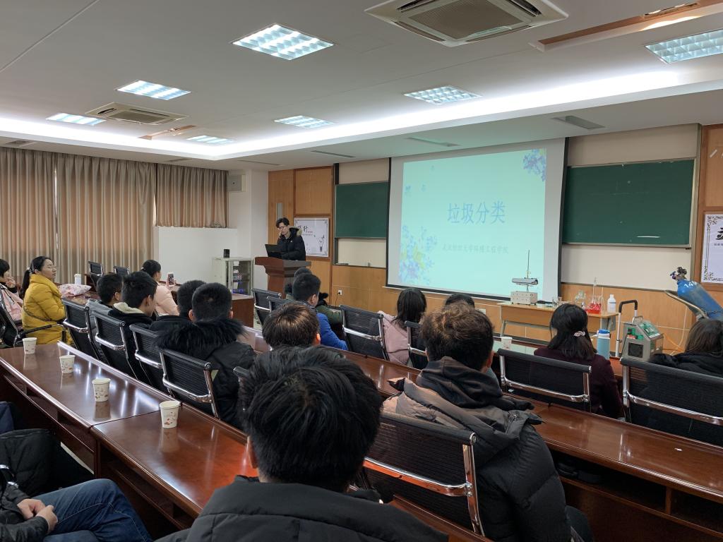 的研究生邹忠伟经过精心准备,为同学们作了一场《垃圾分类》的科普宣传。他从什么是垃圾分类、为什么提倡垃圾分类、如何进行垃圾分类以及分类后如何处理等方面引导大家,垃圾虽然无处不在,但只要每个人从自身做起,把纸张、塑料、橡胶、瓶罐等有用物质从垃圾中分离出来单独投放,把废电池、废灯管、废药品、废油漆桶等对人体健康或者自然环境有害的废弃物适当处理,就可以实现资源的合理利用、变废为宝。他叮嘱同学们,垃圾分类是一项长期而艰巨的任务,甚至需要几代人的不懈努力才能成功。