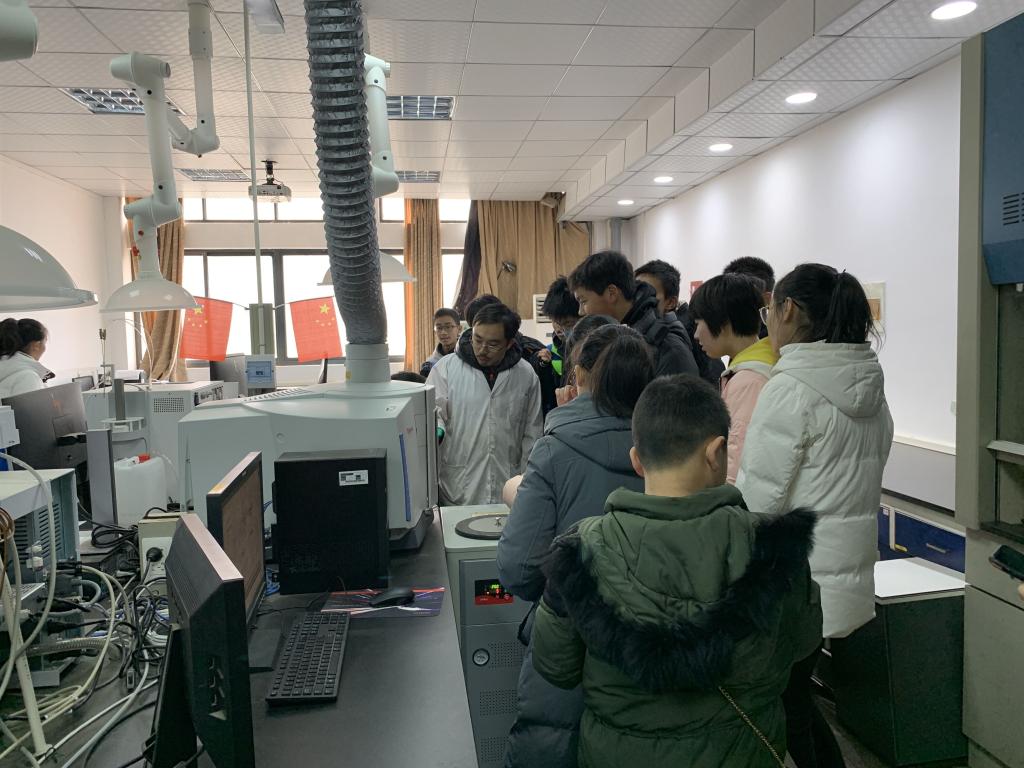 在难降解工业废水处理研究室,孙磊老师现场演示了光化学氧化及臭氧氧化处理染料废水实验,通俗易懂的介绍了高级氧化处理原理、展示了染料废水处理工艺的过程,并通过操作气相色谱质谱联用仪、等离子体发射光谱仪、离子色谱仪等仪器设备,让同学们了解仪器的功能、基本操作与注意事项,不少同学在老师的指导下兴致勃勃的尝试做起了实验。