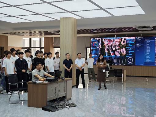 在湖北飞迈科技有限公司代表的热情接待下,学生们首先了解了企业的发展历程、核心业务以及在智慧城市、应急管理领域的创新成果。随后,在技术人员带领下,师生们近距离感受城市智慧大脑应急平台。通过可视化大屏上,对消防、防涝、工业园区危化品防控等的各类关键数据动态汇聚、智能分析,实现全域感知、智能预警、协同指挥能力,展示了该技术在灾害模拟推演、应急预案优化、应急资源智能调度等方面的巨大潜力和实际效能。