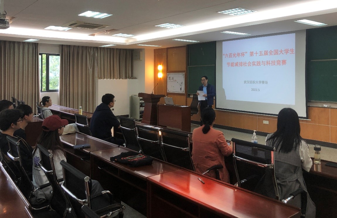 承办的第十五届“六百光年杯”全国大学生节能减排社会实践与科技竞赛武汉纺织大学校赛在阳光校区理工楼310会议室举行。
