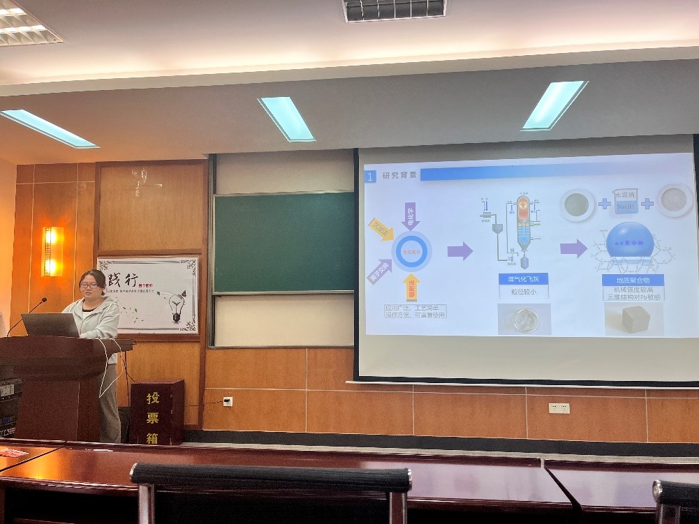 钟梦琪同学重点从元素组成、近似分析和热值等方面讨论了混纺织物的性能,实验结果表明利用棉-涤协同作用去除Cr(Ⅵ)具有较大的应用潜力。