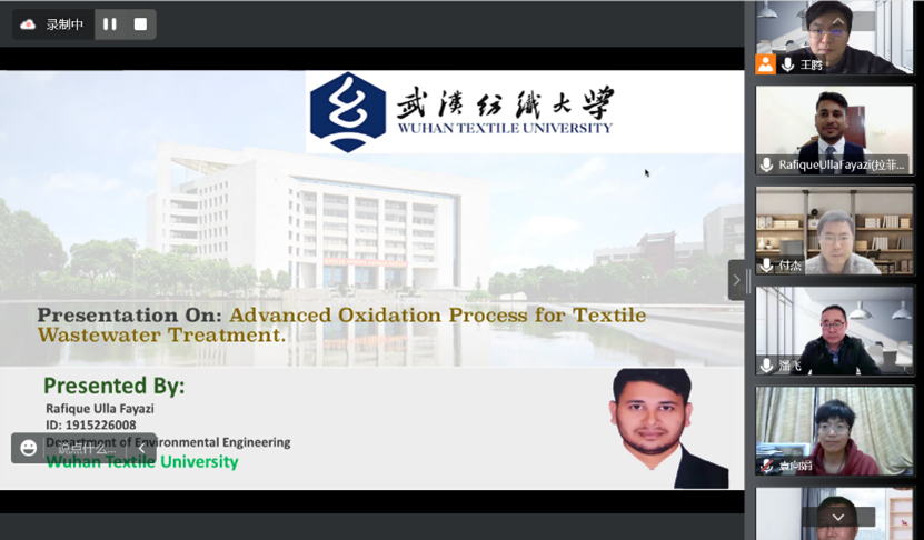 答辩环节中,拉菲克针对高级氧化技术在印染废水处理中的应用做了综述性汇报,答辩过程中分别对自己的研究做了的选题依据、论文、主要结论等方面进行了详尽的陈述。答辩委员会的各位专家针对论文与汇报环节做出了精辟地点评,并且针对性的提出了论文所存在的不足,并与学生进行了充分的讨论。面对评委老师们所提的问题,拉菲克充分运用其专业知识,进行了较为系统的回答。最后,答辩委员会以匿名方式进行打分和投票表决,宣布拉菲克顺利通过硕士答辩环节。