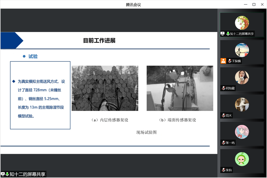 张玉杰同学提出了一种通过监测主缆内部含湿量的方法来推测内部的气流组织的流动状态,并以张皋过江通道为背景,进行了试验。