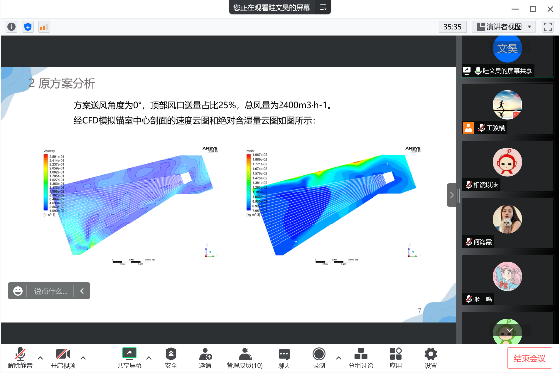 眭文昊同学计算流体力学方法(CFD)和响应面法(RSM)相结合的手段探究了锚室除湿风系统顶部送风口送风角度、顶部送风风量占比和总风量对锚室除湿控制区湿量、气流均匀度和最大绝对湿度的影响。同时通过优劣解距离法(TOPSIS)和多目标遗传算法模型(MOGA)实现了对锚室除湿系统运行参数的优化。