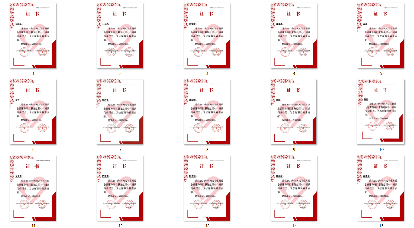 (全国大学生科技创新服务队证书)