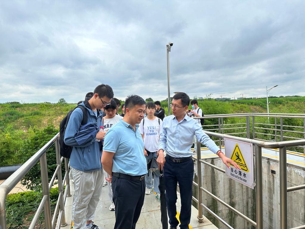 李进平教授一边实地讲解污水处理专业技术,一边结合污水排放的最新标准,向同学们解释“理论+实践”结合的根本意义是让同学们真正从课堂走出来,深入社会、企业一线,用理论知识来指导实践,才能为今后的工作、研究打下坚实的基础。