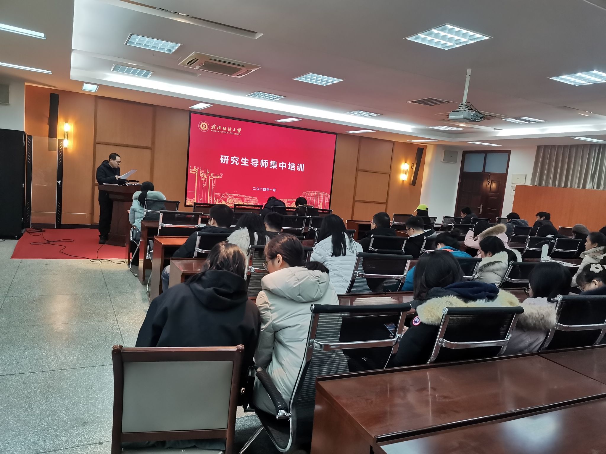 领导班子成员及全体教职工参加。根据学校相关要求,具有研究生招生资格的研究生导师在会上统一学习了“田书记在2024年研究生导师大会上的讲话内容”和“导辅协同”研究生危机案例处理工作指引,并统一观看研究生安全教育警示片。