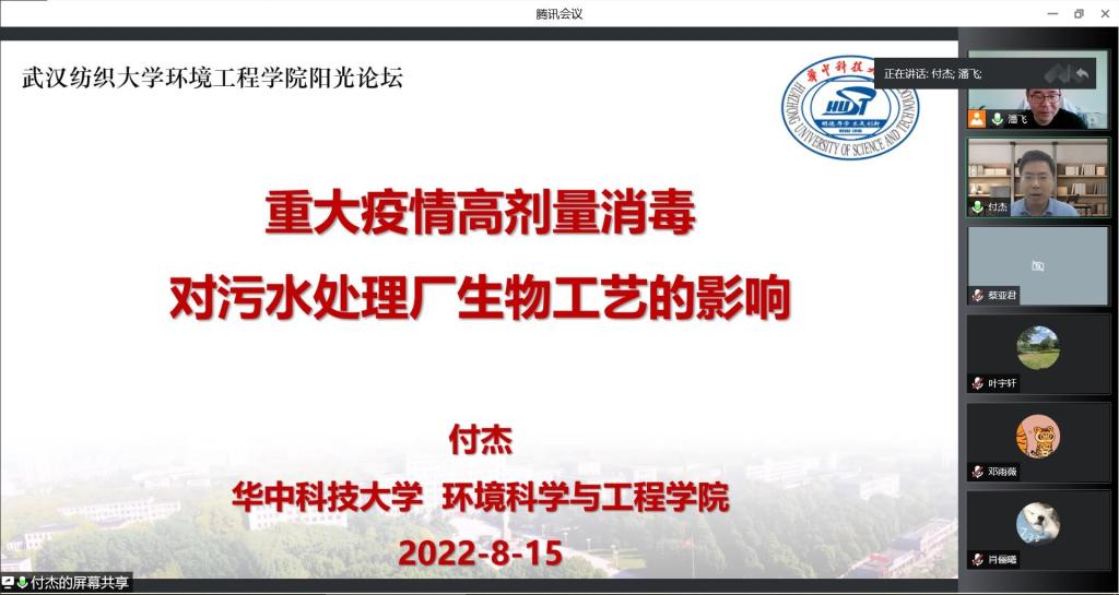 在线上举办第181期阳光论坛。本次论坛邀请了华中科技大学付杰教授作了题为“重大疫情高剂量消毒对污水处理厂生物工艺的影响”的报告。论坛由环境工程澳门中特网