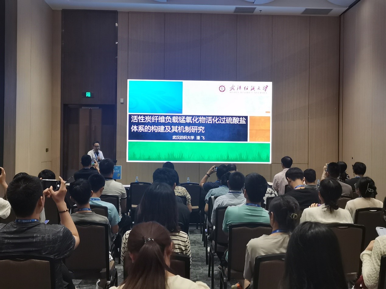 7月8日下午,潘飞教授在“B03水处理功能材料”分会场做了题为“活性炭纤维负载锰氧化物活化过硫酸盐体系的构建及其机制研究”的学术报告,主要分享了近年来活性炭纤维在水处理工艺方面的研究。报告受到了在场学者的一致好评,潘飞教授还针对与会者的提问进行了细致的回答,并期待与其它机构加强学术合作。