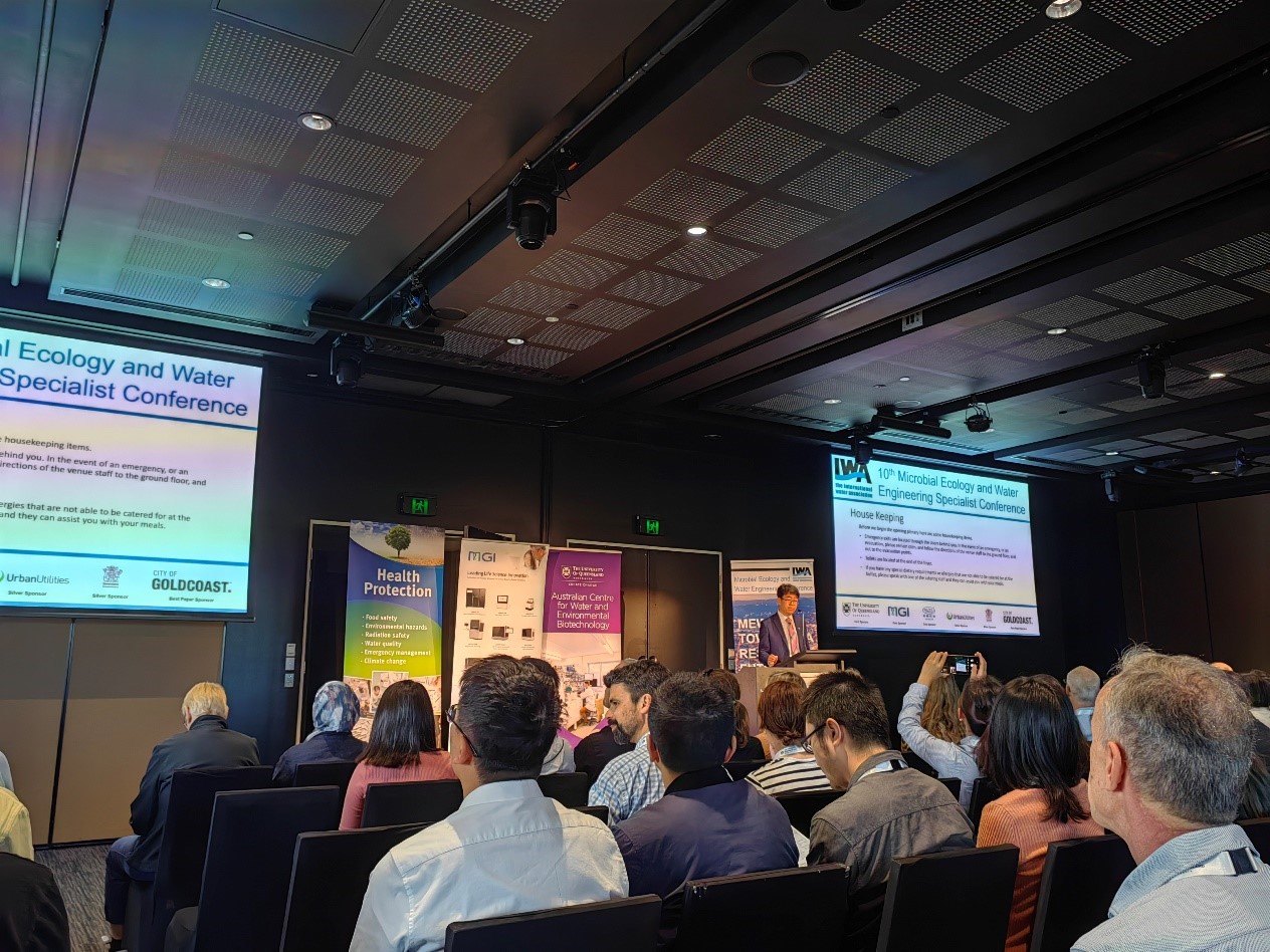 2023年9月10日至14日,澳门中特网 青年教师裴轩瑗应邀前往澳大利亚布里斯班参加了“第十届IWA微生物生态学和水工程专家会议”,并在会上进行了海报展示。此次出访是一次具有重要意义的学术交流活动。会议由昆士兰大学和国际水协组织(IWA)共同主办,吸引了来自世界各地的水处理和微生物生态学领域的专家学者,涵盖了多个领域,包括废水处理、水资源管理、水质监测等。这为澳门中特网 教师提供了与不同领域专家交流的机会,拓宽了学术视野。会议报告涵盖了众多前沿研究领域,如新型微生物生态学方法、水处理领域的新技术和可持续发展方向等。与会者积极参与会议报告后的讨论,分享他们的学术成果和见解。这种互动促进了不同研究团队之间的合作和知识交流。