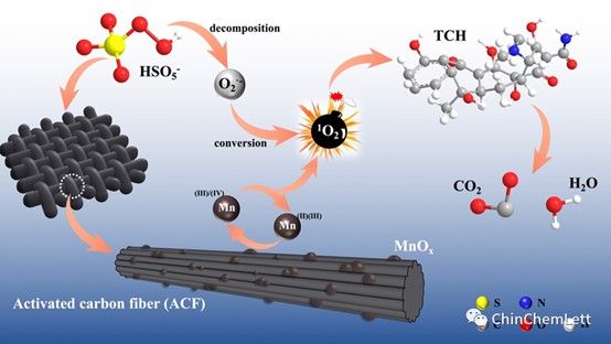 在此基础上,团队尝试以活性炭纤维(activated carbon fiber, ACF)为载体,在低温煅烧下将部分MnO2转化为多价的Mn3O4,合成了一种新的多价催化剂。具有高导电性和缓冲基质的ACF不仅可以调节MnOx的组成,还可以克服MnOx因其化学和热稳定性差而导致的团聚现象。此外,ACF自身结构和表面化学的多功能性可以将有机污染物吸附到自身表面,缩短有机污染物与活性物种之间的距离,从而提高催化剂的催化效率。研究成果以“Activated carbon fiber mediated efficient activation of peroxymonosulfate system: modulation of manganese oxides and cycling of Mn species”为题,发表于知名学术期刊Chinese Chemical Letters (中科院1区,2022年IF=9.1,论文链接://doi.org/10.1016/j.cclet.2023.108407)。我校为唯一署名单位,论文第一作者为研究生肖俪曦,通讯作者为潘飞教授。