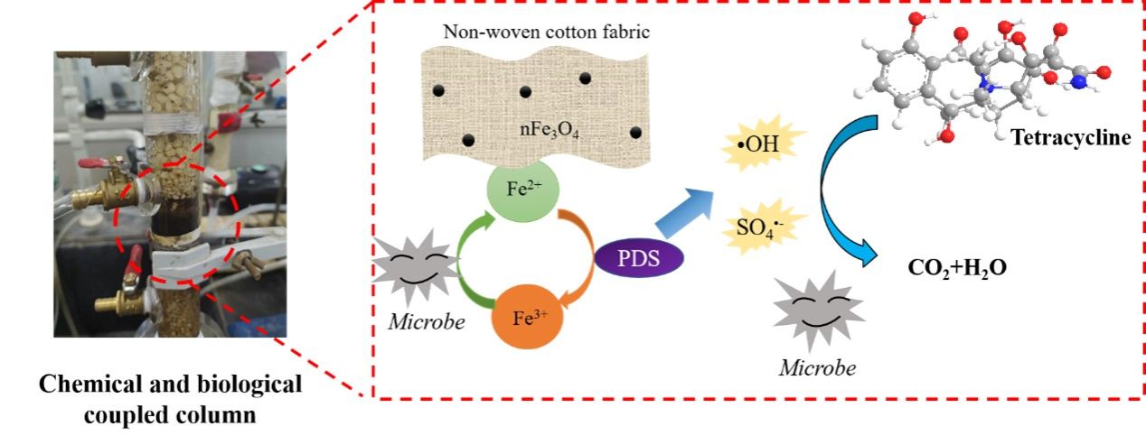 印染、电镀、制革等各种工业废水含有大量重金属,若不及时处理会对环境造成极大危害。常见的处理工艺如沉淀、吸附、离子交换等虽可有效去除游离重金属,但在实际废水中,游离重金属会与有机配体形成稳定的重金属络合物,抑制了传统工艺的去除效率。因此,开发高效、廉价的破络工艺来消除重金属络合物对环境的影响是亟待解决的问题。该课题组前期结合我校的纺织特色,以无纺棉布为载体,构建了纳米Fe3O4和活性污泥的复合体系,此次发表的研究成果进一步将该体系扩展到重金属络合物的去除。前期的科研成果已于2023年7月发表于环境领域学术期刊Journal of Water Process Engineering(中科院2区,2022年IF=7.0,论文链接://doi.org/10.1016/j.jwpe.2023.103718),我校为第一署名单位,该论文第一作者为硕士生王笠,通讯作者为叶宇轩博士和潘飞教授。