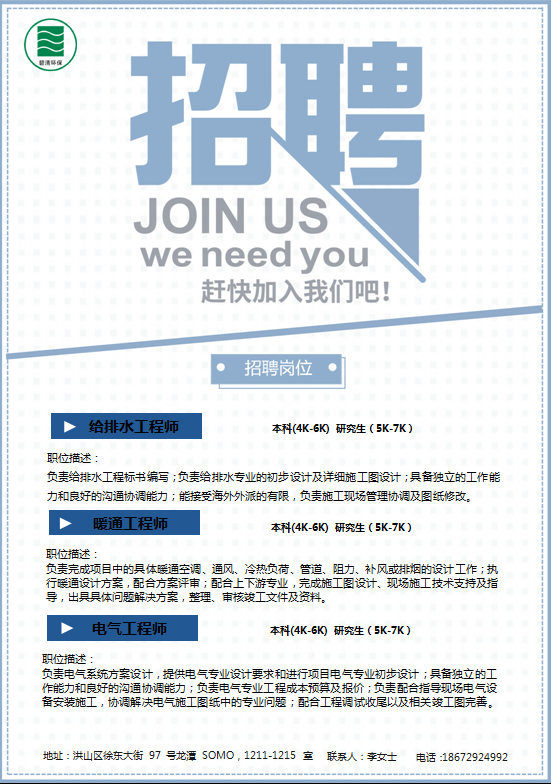 上一条:【就业信息】宜态科水务技术(上海)有限公司招聘