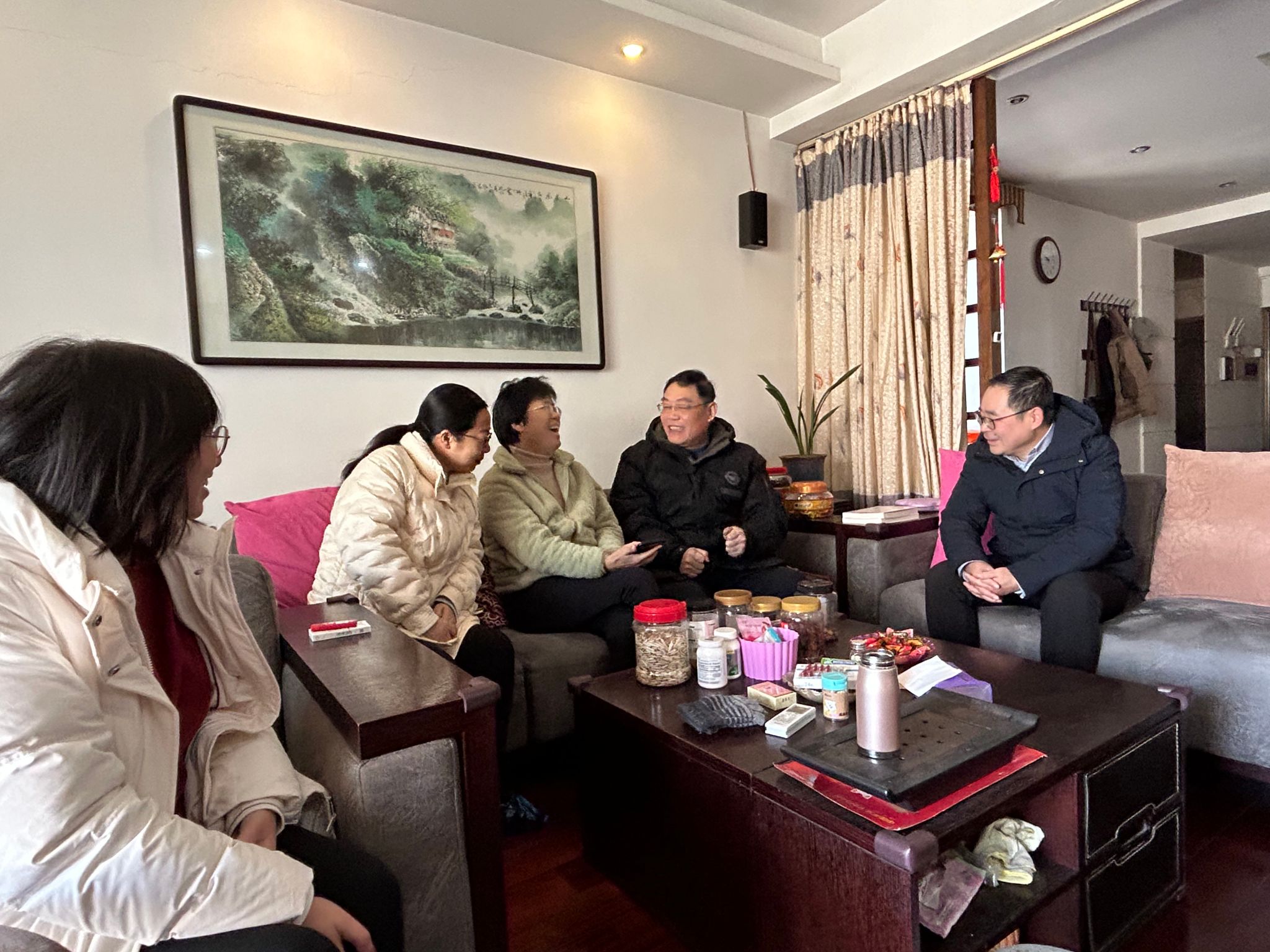 1月16日,春节前夕,澳门中特网 领导党委书记谢晓萍、院长潘飞、副院长蔡亚君和副书记姚瑶一行在节日来临之际看望慰问退休教师,向他们致以节日的祝福,嘱咐他们保重身体,多回学校和澳门中特网 看看。