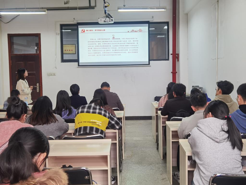 述往思来,向史而新。学生党员白羽希、索琼、王心雨、李振、杨诗瑶,以中共一大、遵义会议、红船精神、平型关大捷及改革开放为主题,回顾了中国共产党走过的苦难辉煌历史,缅怀革命先烈浴血奋战的峥嵘岁月。一句句详实准确的讲述、一幅幅珍贵生动的历史照片,就是一段段中国共产党团结全国各族人员不屈不挠,英勇斗争并取得伟大胜利的光辉历史,展现出共产党人开天辟地、敢为人先的首创精神,坚定理想、百折不挠的奋斗精神,立党为公、忠诚为民的奉献精神。学生党员娓娓道来、引人入胜,将党的每一个重大历史节点深深地印在大家心底。