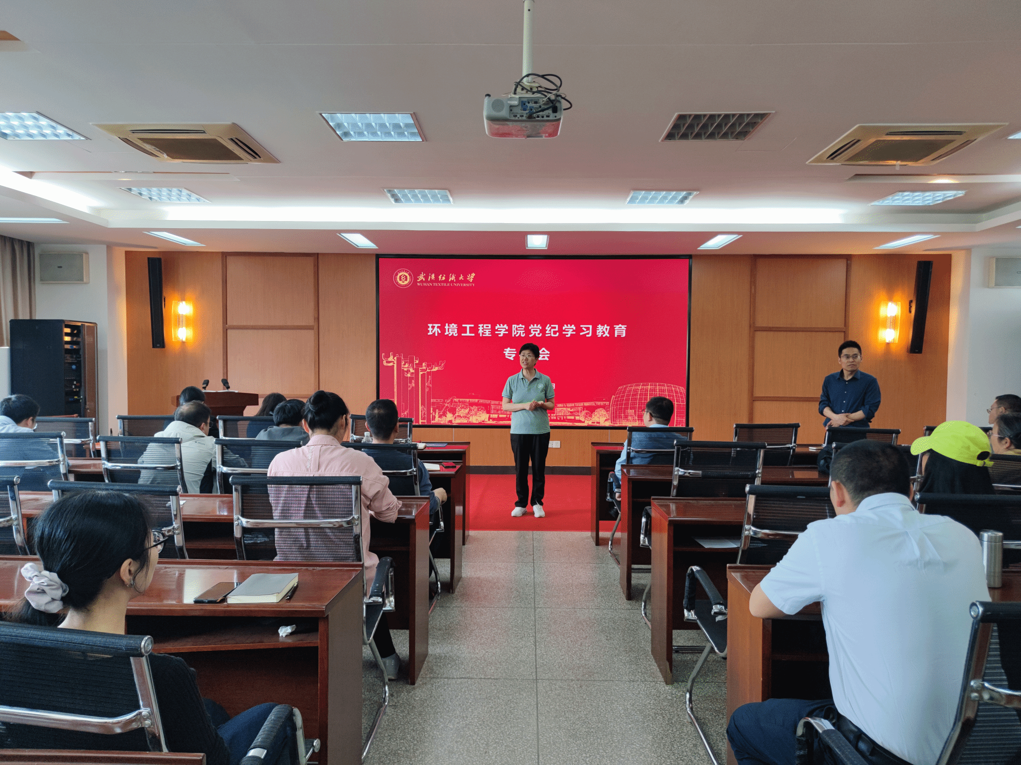召开教职工政治理论学习会,就3月政治理论学习内容开展集中学习,并就学校相关通知和精神进行传达。教职工集中学习会由潘飞院长主持,全体教职工参加。