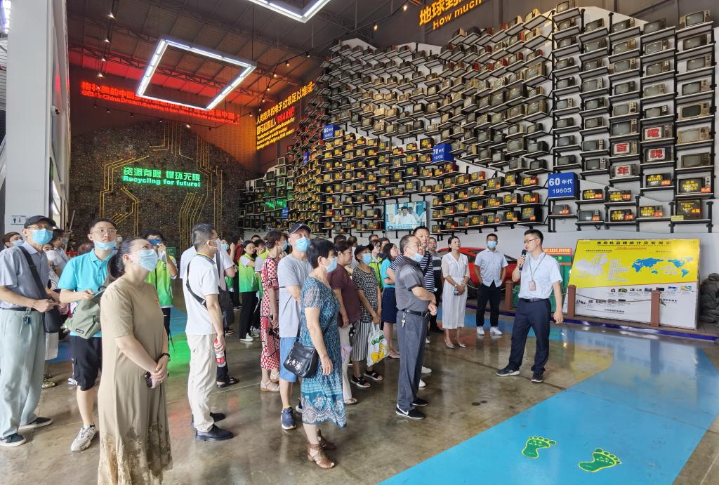 党委书记谢晓萍、院长潘飞、副书记姚瑶、学生党支部书记、学生党员和洪山区玫瑰湾社区党员40余人一同参观了园区循环站、绿色理想站、绿色乐园站、变废为宝站、报废汽车处理站、电子废弃物处理站、动力电池再制造站、碳中和站等,听园区专家讲电子废弃物的循环利用过程和“双碳”理念在生产中的应用,体验了一次沉浸式学习。