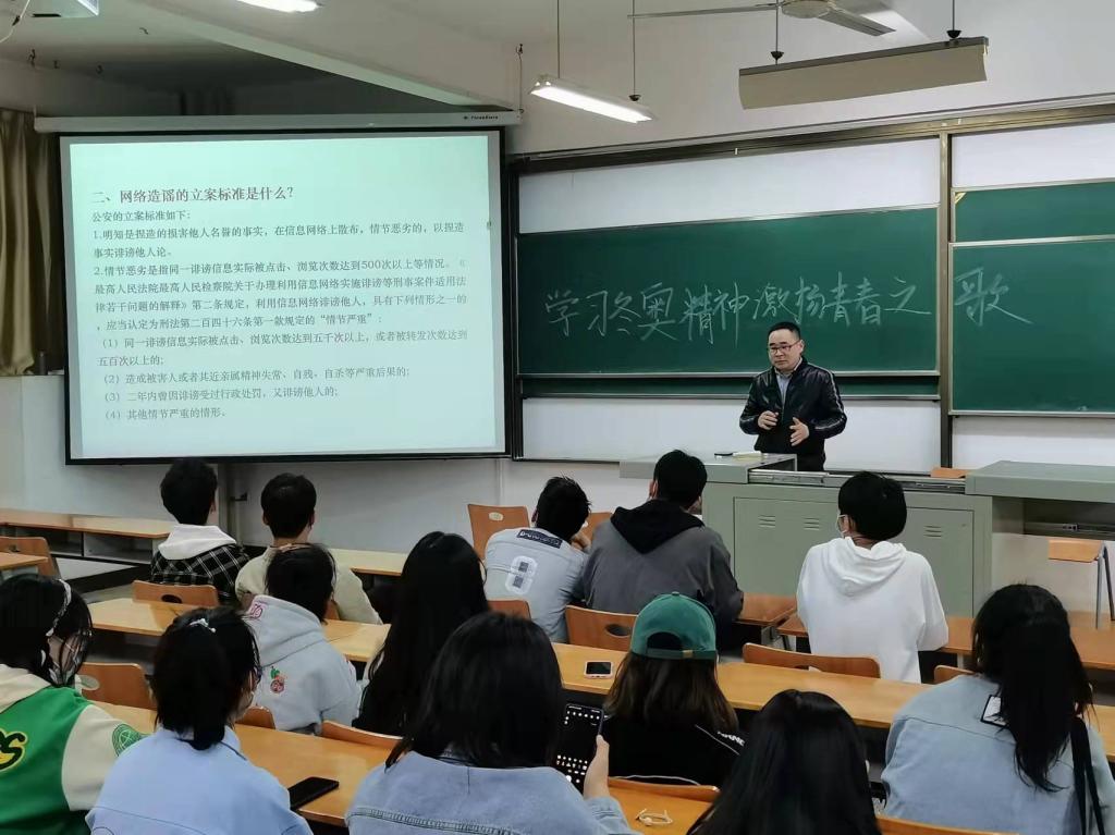 在《规范网络言行 共筑清朗空间》主题教育中,用生动详实的案例告诉同学们,在信息共享、获取知识、购买商品、娱乐游戏的过程中,不可避免会受到网络谣言、网络暴力、网络欺诈、色情低俗等网络垃圾的侵扰,创建干净、健康、清朗、和谐的网络空间,需要每一个人的共同维护。作为青年学子,对网上信息要仔细甄别,不上传、转发、传播未经证实的消息。