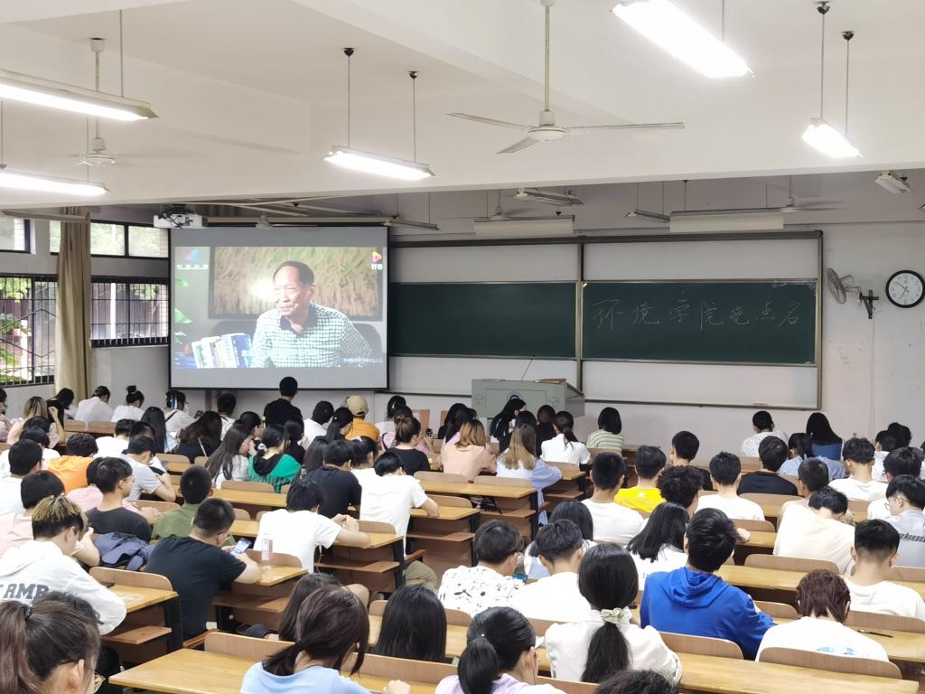 在崇礼楼110教室组织受助学生代表集中观看袁隆平院士的纪录片。