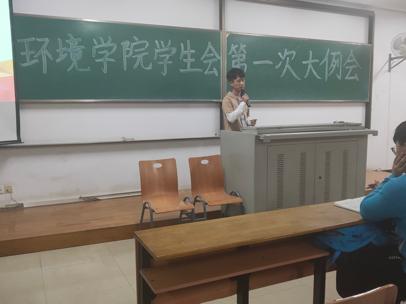 学生会新学期第一次例会在崇礼楼召开,第十四、十五届学生会主席刘行韬、邓雨薇及全体学生会成员参加了会议,会议由黄雪梅、田爽主持。