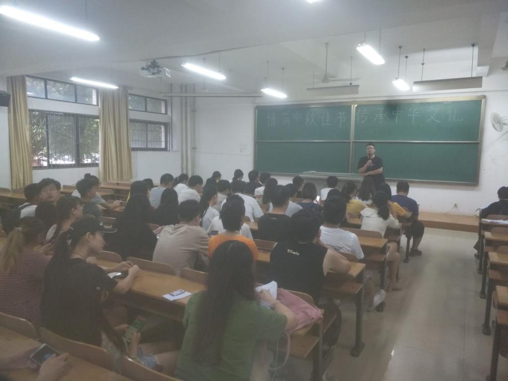 首先,刘老师强调了中秋假期返校的安全问题,要求各班认真统计在途同学情况。其次,刘老师再次告诫大家注意防范非法校园贷等其他危害大学生安全的违法组织。最后,刘文祥老师就“学习中秋节的深厚文化内涵,感受文化魅力”的目的,鼓励同学们牢固树立传承中华优秀传统文化的意识。
