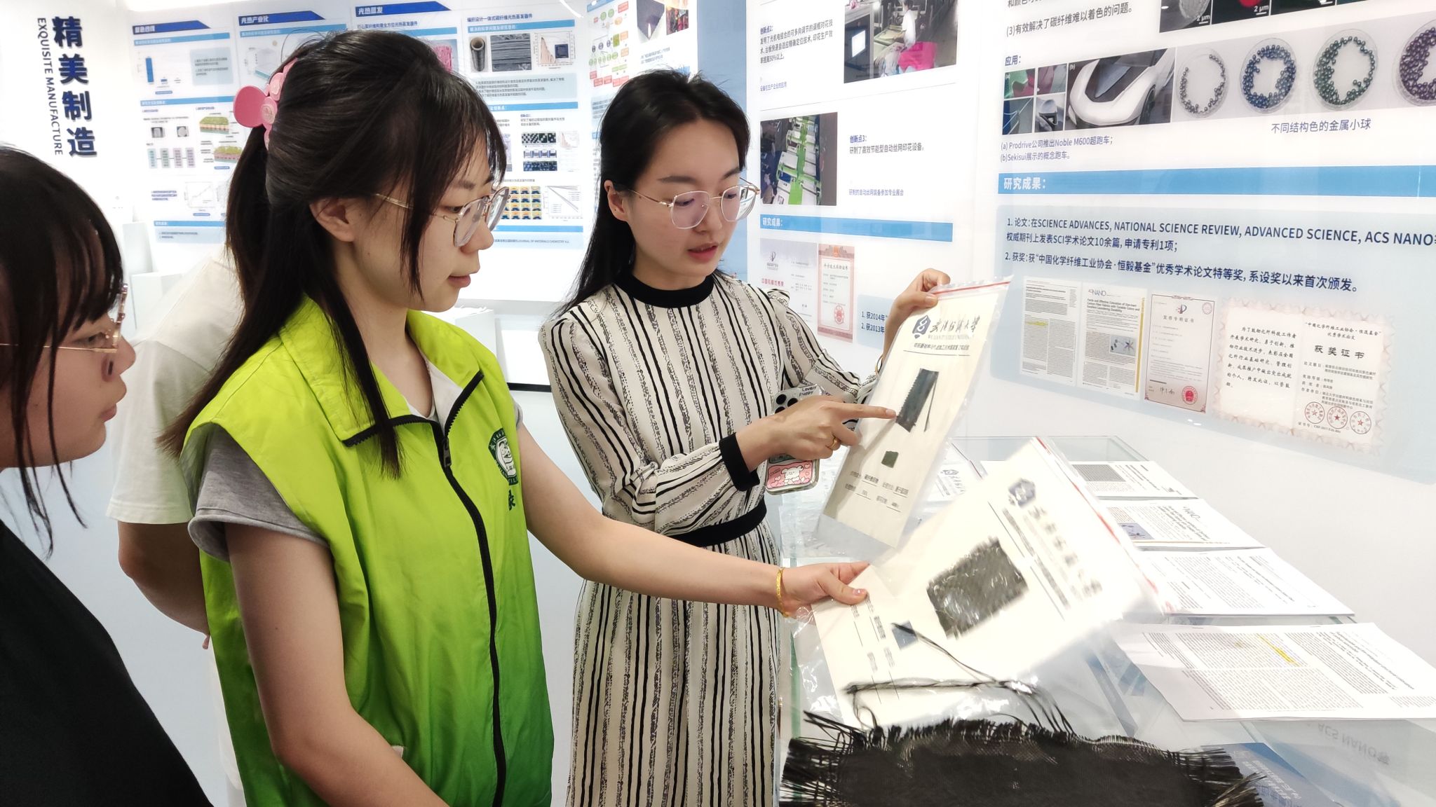 优质天然高分子材料和高效嵌入式复合纺纱技术的运用,实现了国旗在太空中可以耐受极端高真空、高低温循环,保持不变形、不褪色……”在超纺织板块,同学们见到了那面在月球上飘扬的国旗,再次激起了纺大学子心中的自豪感。