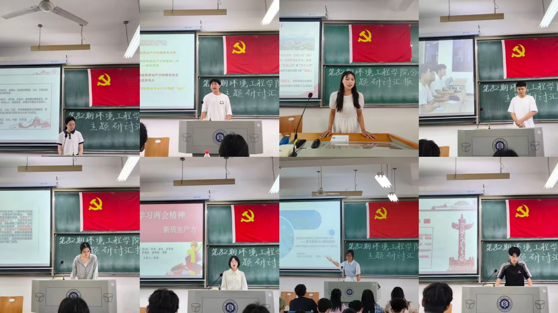 本次研讨围绕2024年全国两会精神深入开展,汇报共分为八组。第一组以《美丽中国先行区》为题,深入探讨了生态文明建设的重要性和实践路径;第二组以《超长期国债》为题,从国家财政角度分析了超长期国债在稳定经济增长、优化债务结构方面的积极作用;第三组以《建设美丽中国》为题,详细解读了两会中关于生态环境保护和可持续发展的政策措施;第四组以《新质生产力与绿色发展》为题,分析了新时代下新质生产力与绿色发展之间的关系,阐述科技创新在推动绿色发展中的关键作用;第五组以《发展新质生产力》为题,探讨了新质生产力在推动经济社会高质量发展中的重要作用,并分析了如何通过创新发展、优化结构、提升效率来推动新质生产力的不断提升;第六组以《镌绘新质生产力的绿色底色》为题,强调新质生产力与绿色发展之间的紧密联系,在推动新质生产力发展的同时,要注重生态环境的保护和修复,实现绿色发展的目标;第七组以《建筑环境与能源应用工程与新质生产力》为主题,结合专业特色,分析了建环专业如何通过技术创新和产业升级推动该领域的绿色发展;第八组以《新质生产力与大学生》为题,从大学生的角度出发,探讨了新质生产力与大学生成长成才的关系。