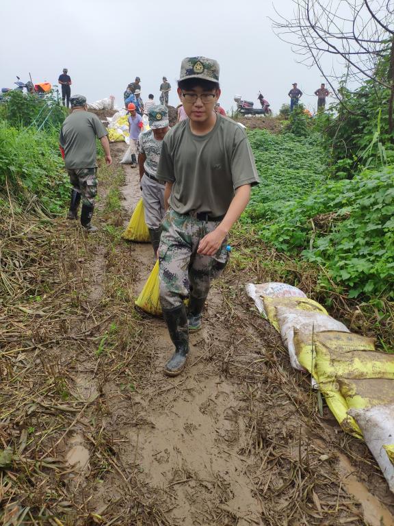 今年7月,长江流域普降暴雨,洪涝险情一触即发。周帆的家乡镇江位于长江下游,夏季本就多雨,今年上游洪水呼啸而来,防汛压力倍增,多处水位甚至超过了1998年。7月13日,周帆找到社区主任,主动要求加入抗洪抢险队伍,立即被编入民兵连并随队驻守水患最严重的江心洲。